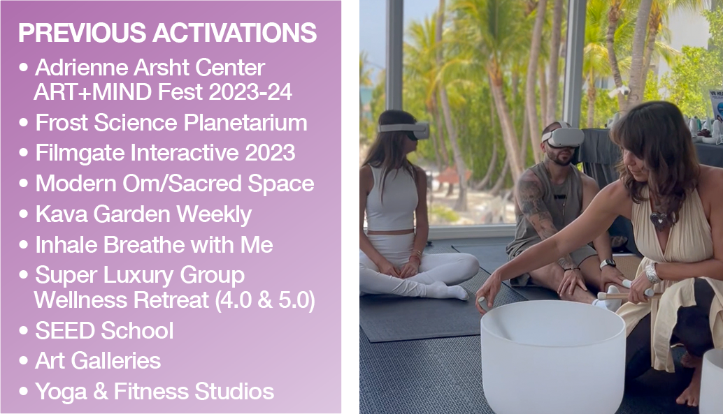 VR Meditation Sessions are accompanied with traditional wellness modalities: Breathwork and Crystal Bowl Soundbath.